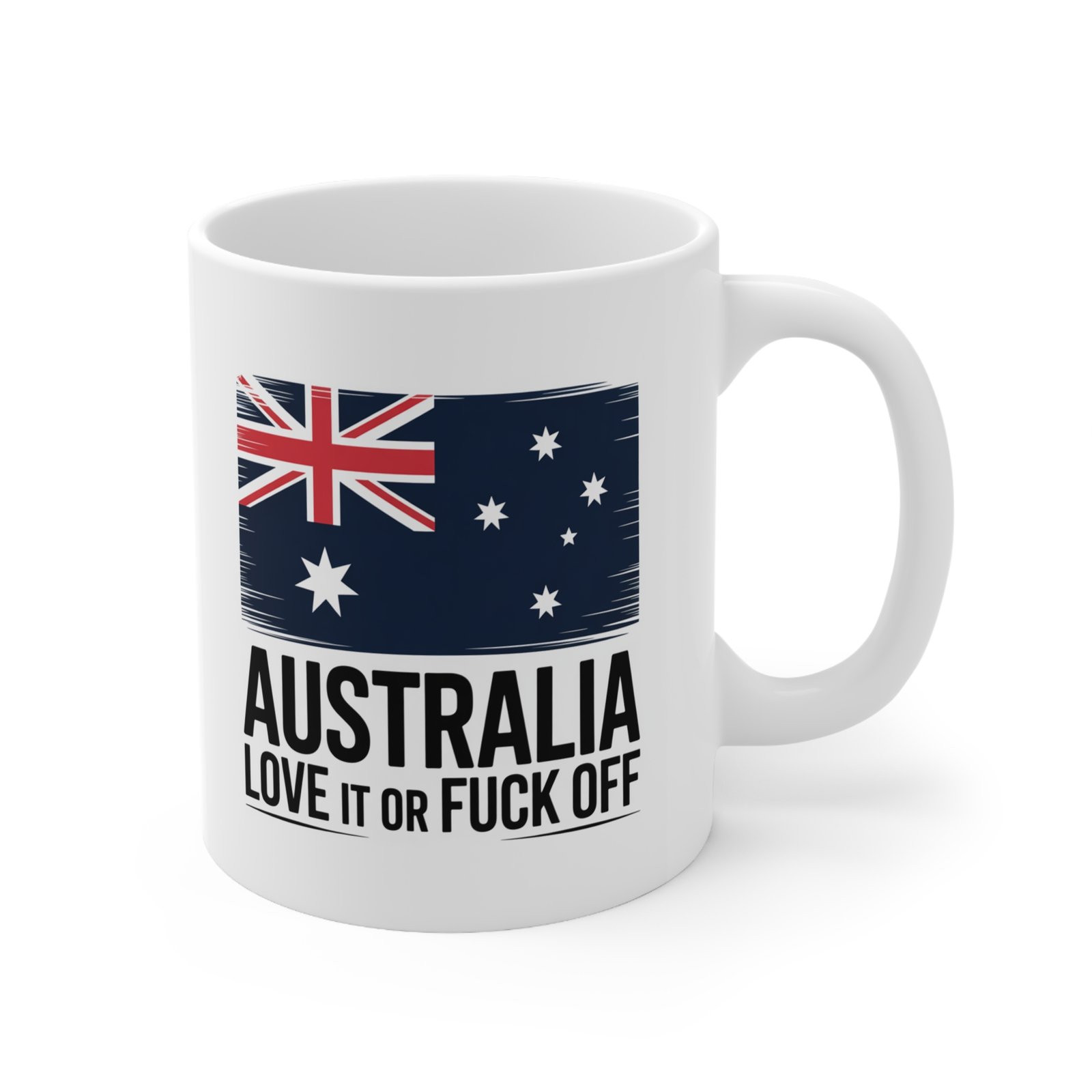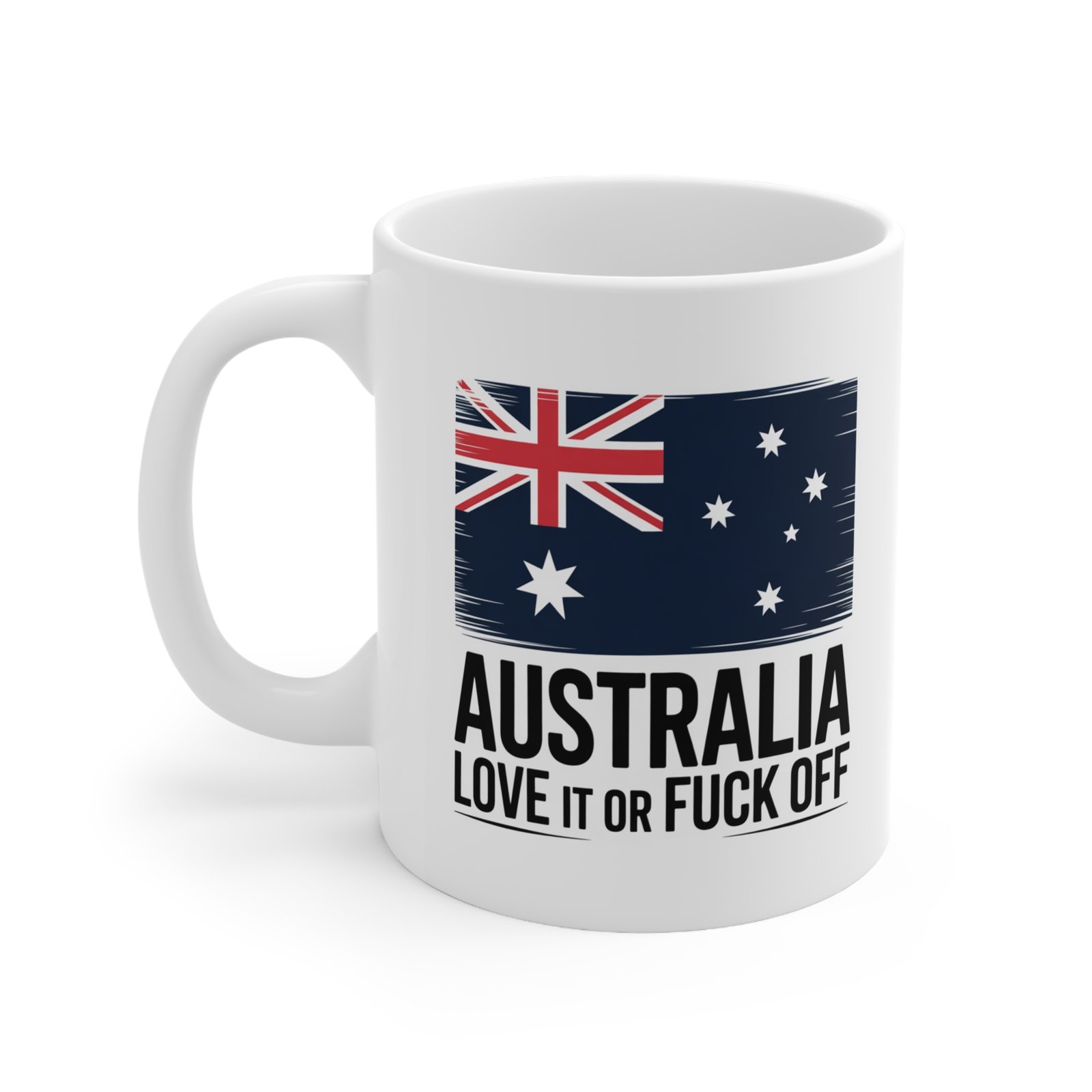 Humorous Australia-themed 11oz ceramic mug perfect for proud Australians or anyone who wants to show their love for Australia. This mug provides a fun and bold way to enjoy your favorite beverages while celebrating your Australian pride.