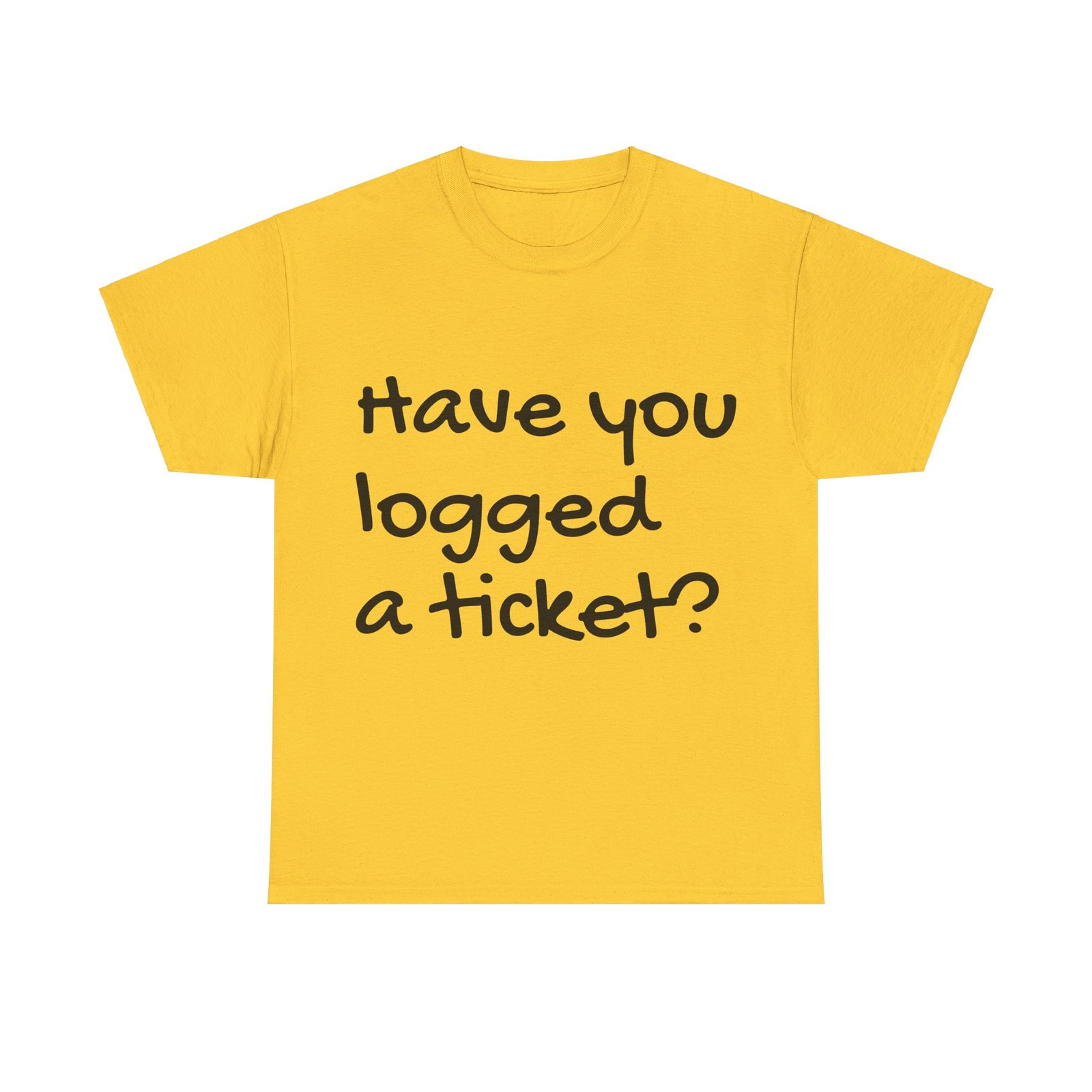 Men’s cotton t-shirt featuring black print ‘Have you logged a ticket’, perfect for any IT professional or as a gift for IT colleagues. This tee offers a comfortable fit with a classic look that can be worn casually or semi-formally. Relevant for IT professionals, tech enthusiasts, and as a gift for IT colleagues.