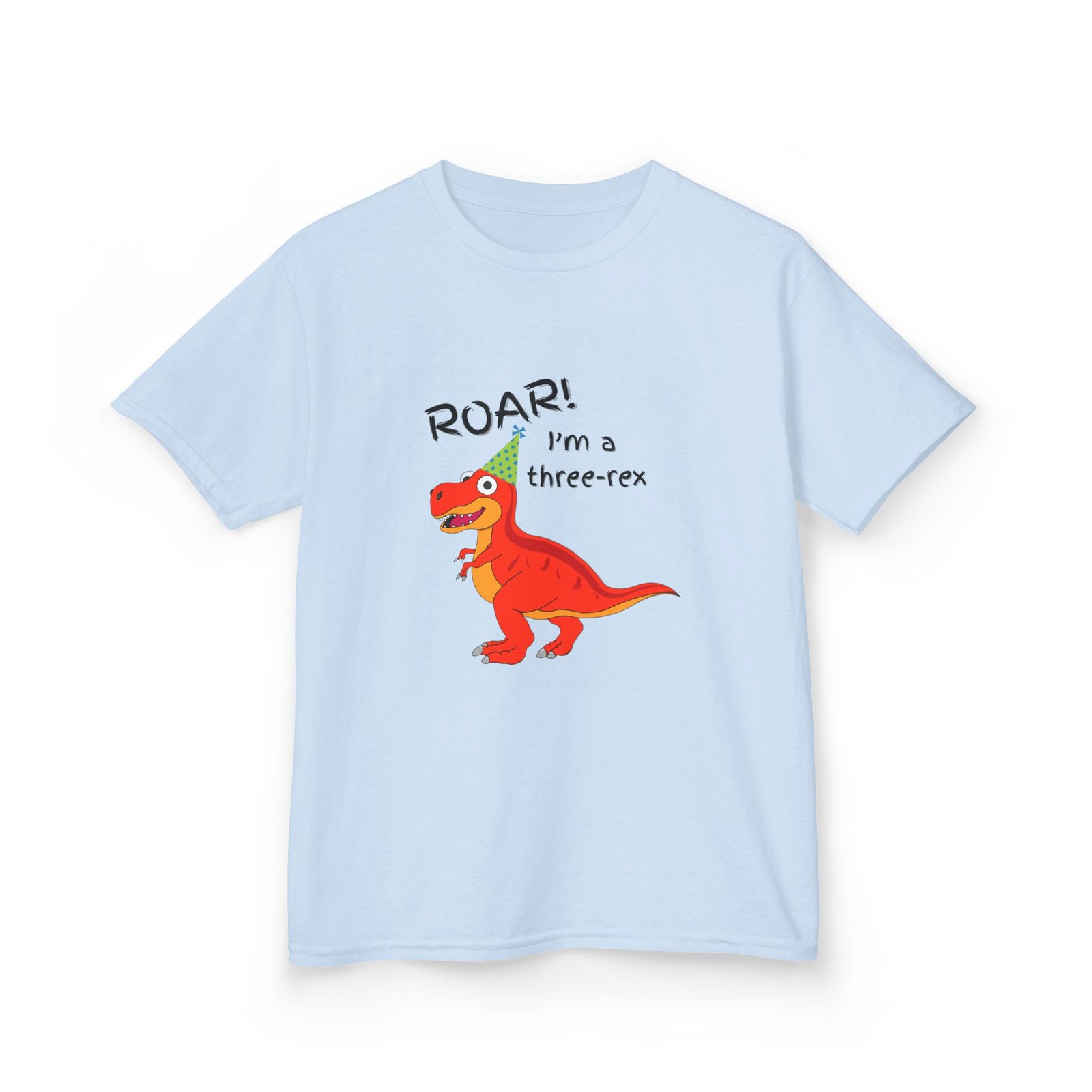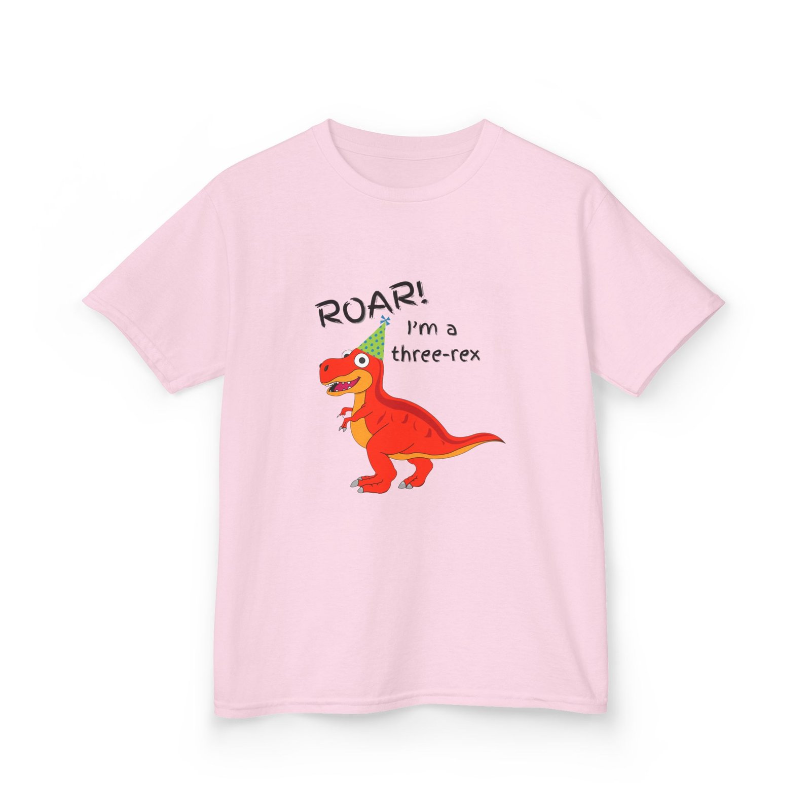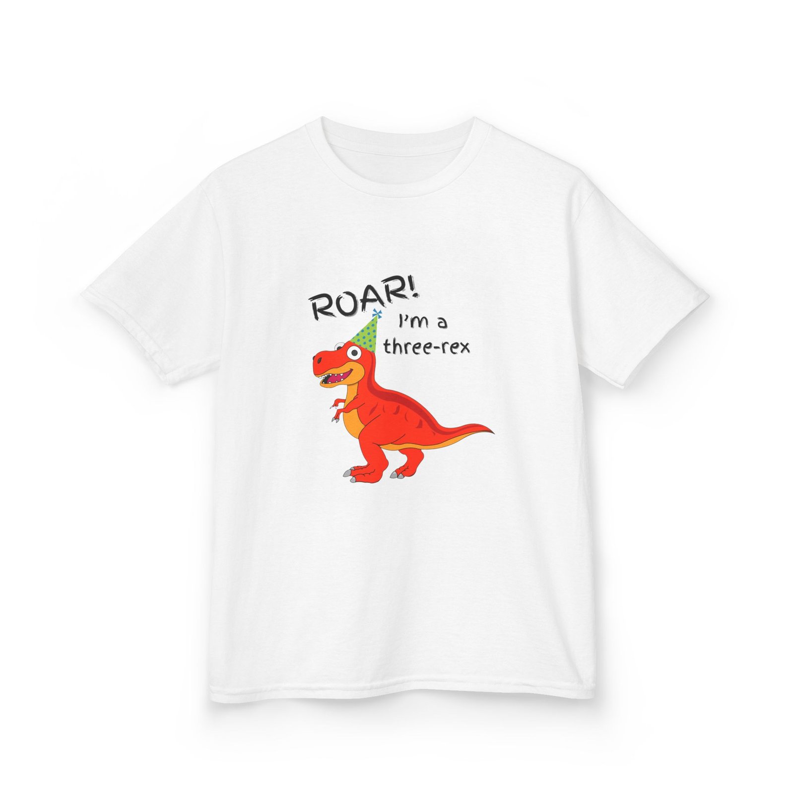 A cute children’s cotton T-shirt for three year olds with the fun print that says ‘I’m a three-Rex’. Perfect for young dinosaur lovers, this tee brings a playful and adorable vibe to any kid’s wardrobe. Ideal for birthday parties, playdates, and casual everyday wear.