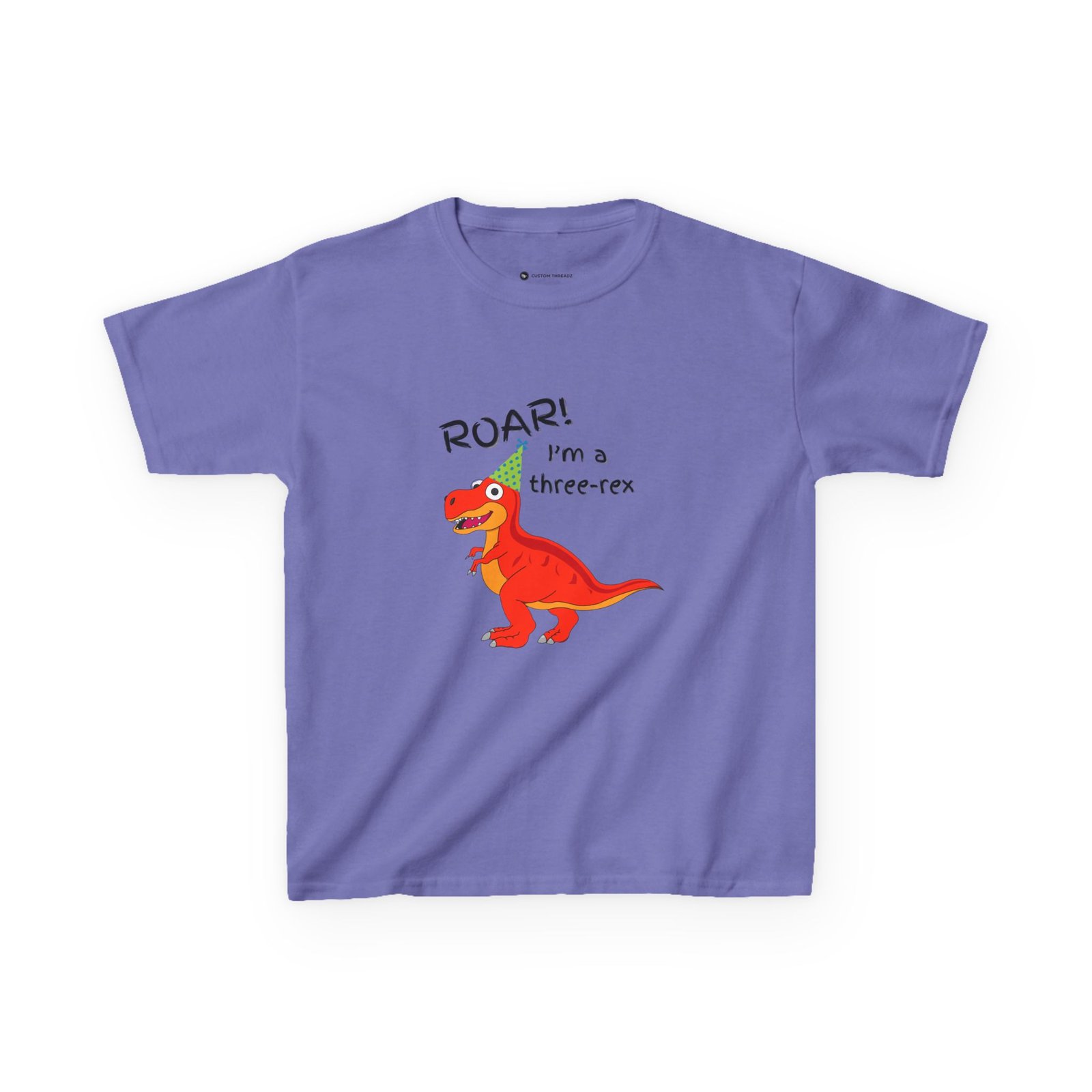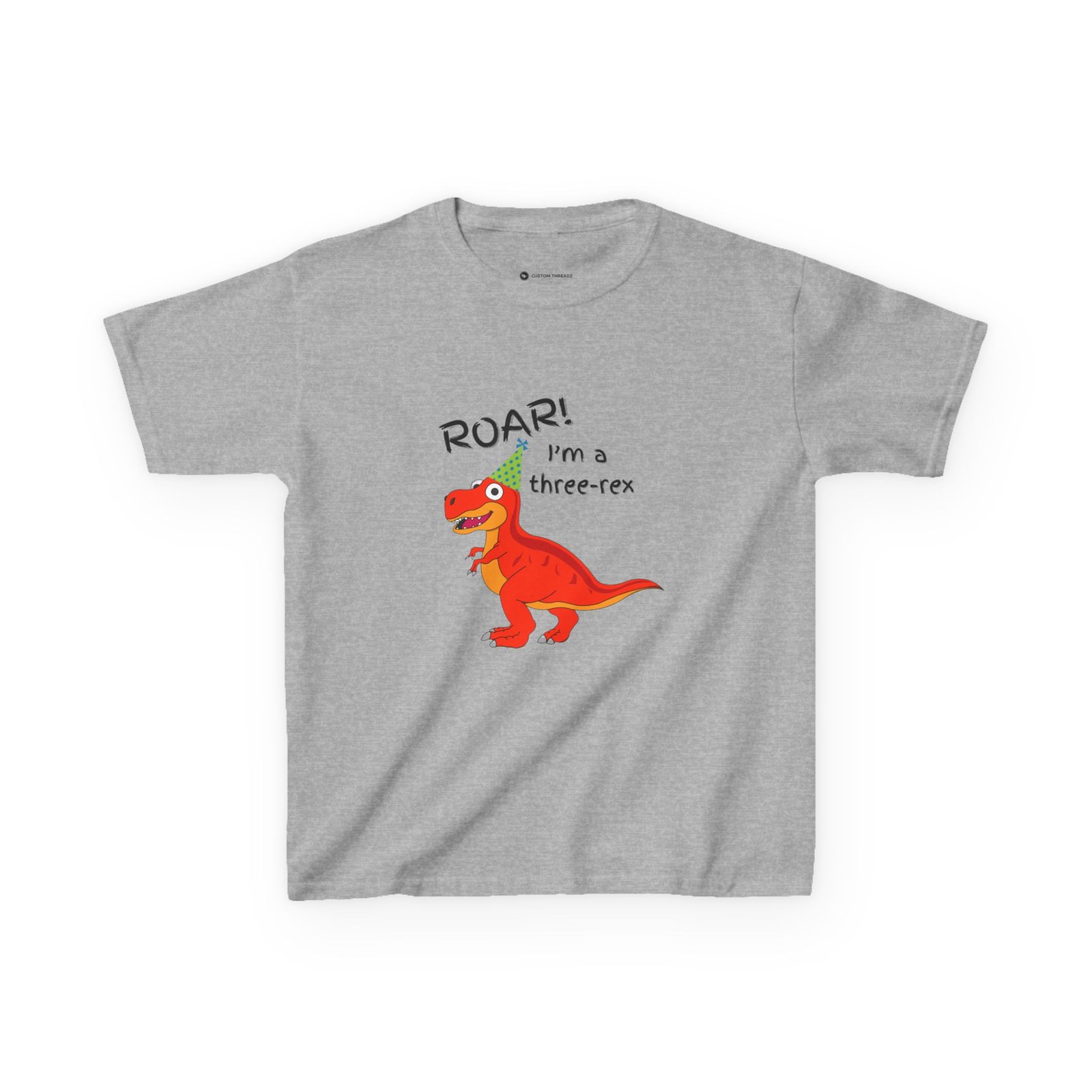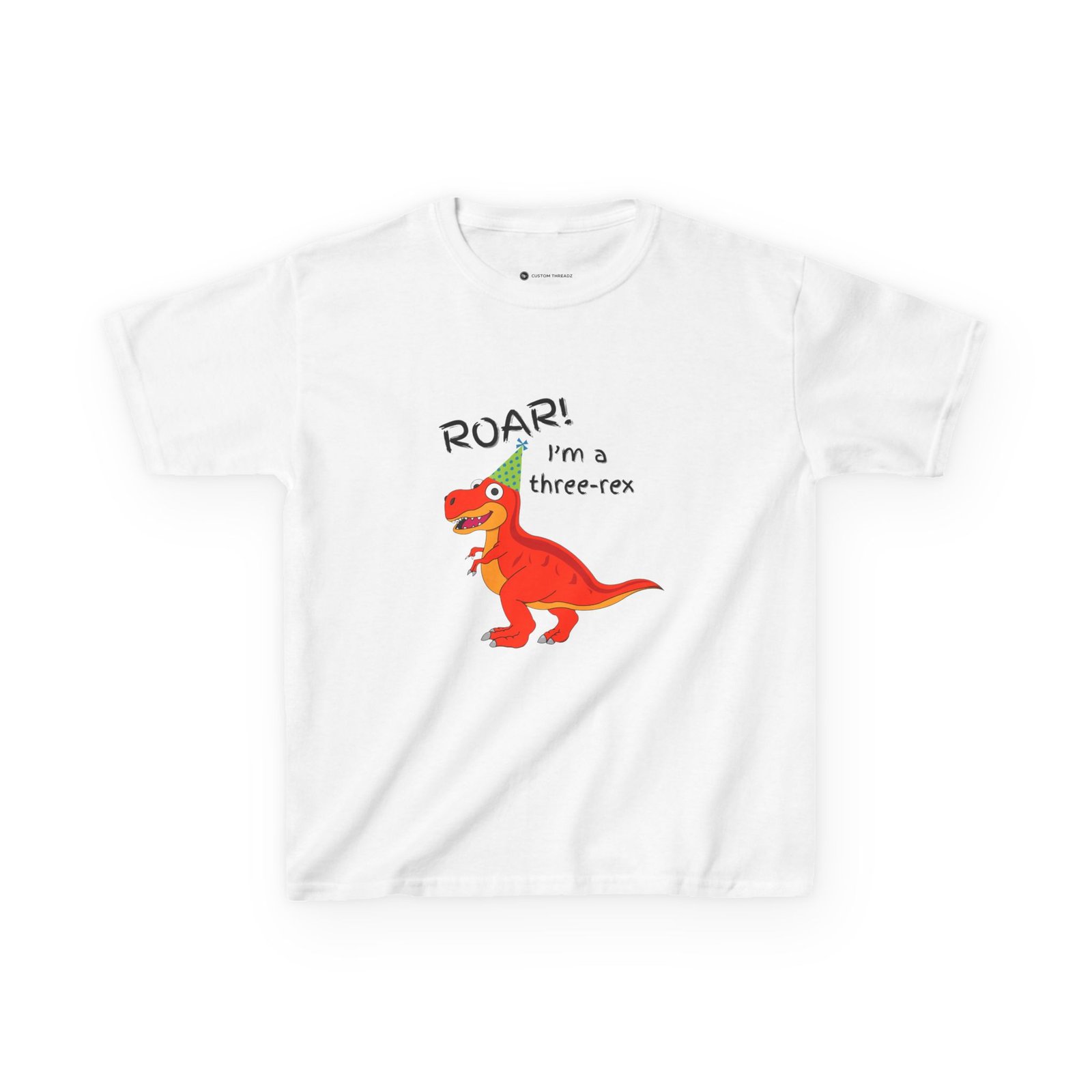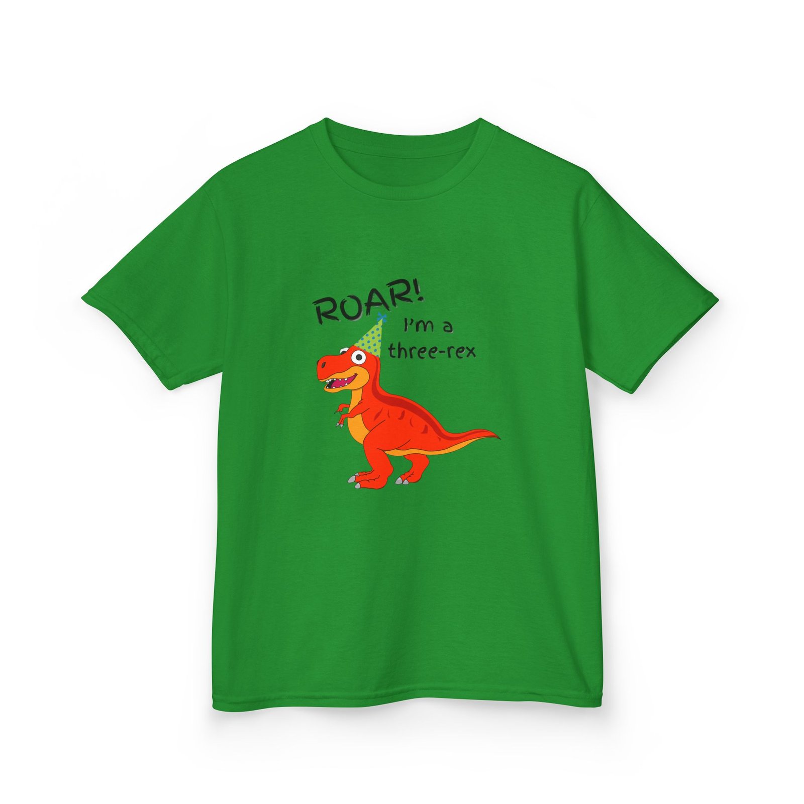 A cute children’s cotton T-shirt for three year olds with the fun print that says ‘I’m a three-Rex’. Perfect for young dinosaur lovers, this tee brings a playful and adorable vibe to any kid’s wardrobe. Ideal for birthday parties, playdates, and casual everyday wear.