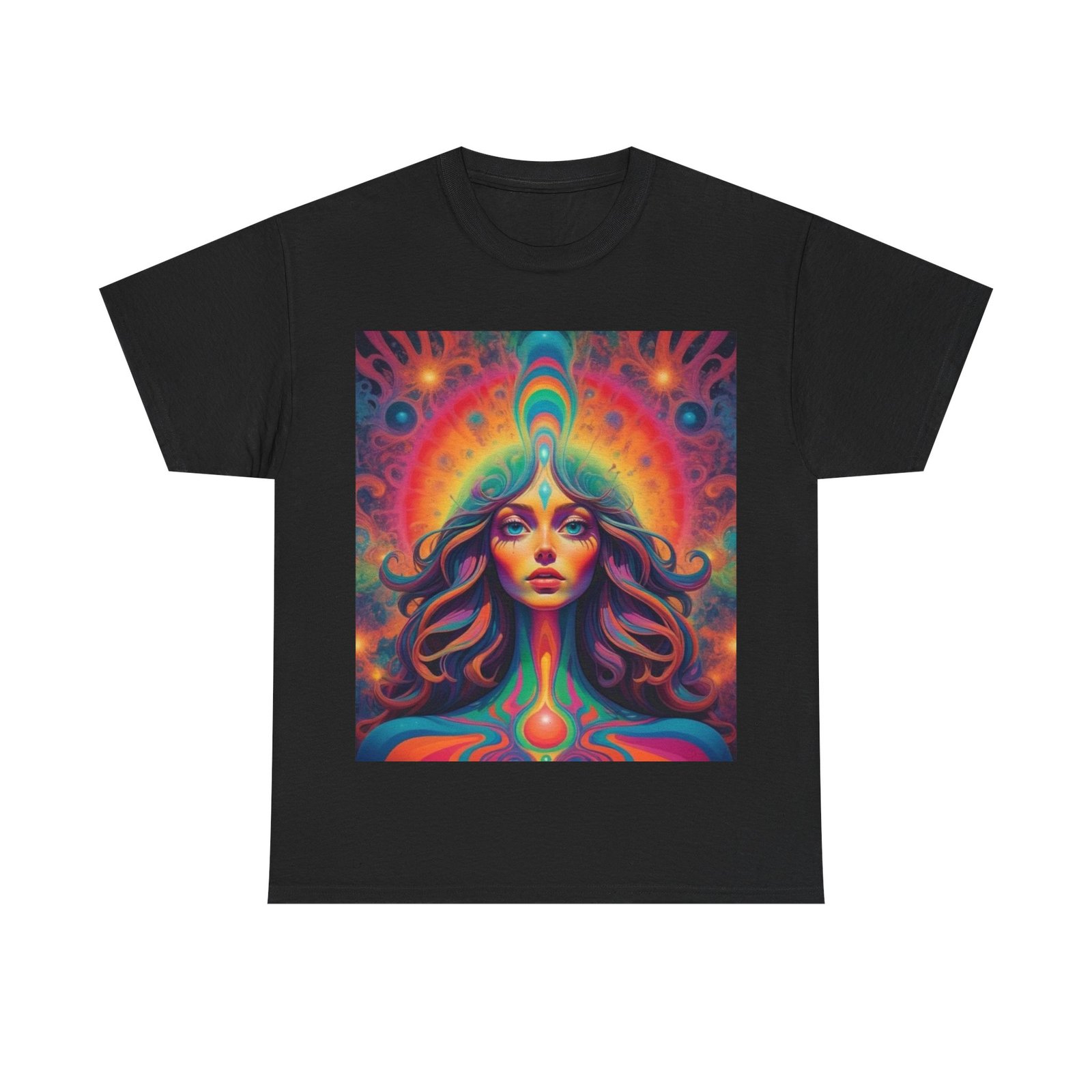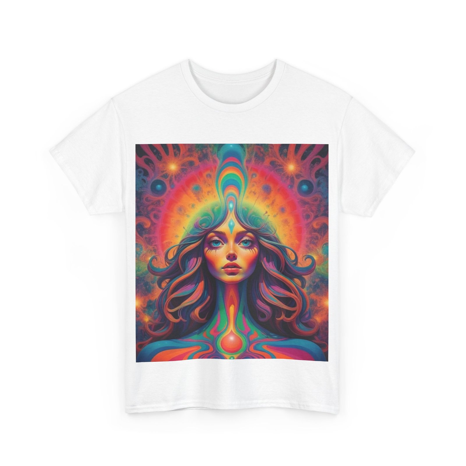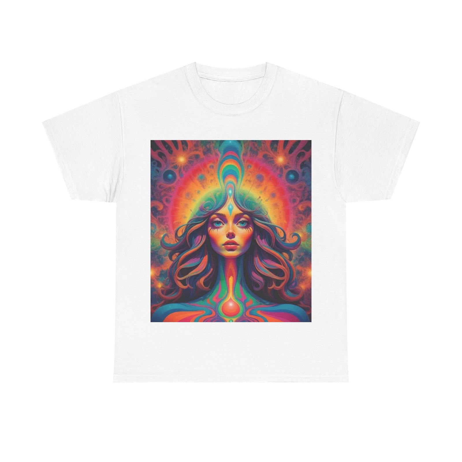 Fun psychedelic men’s cotton T-shirt that is perfect for casual wear or adding a pop of color to any outfit. This t-shirt gives off a vibrant and energetic vibe, suitable for those who enjoy standing out in a crowd. Perfect for music festivals, casual outings, or just lounging at home.