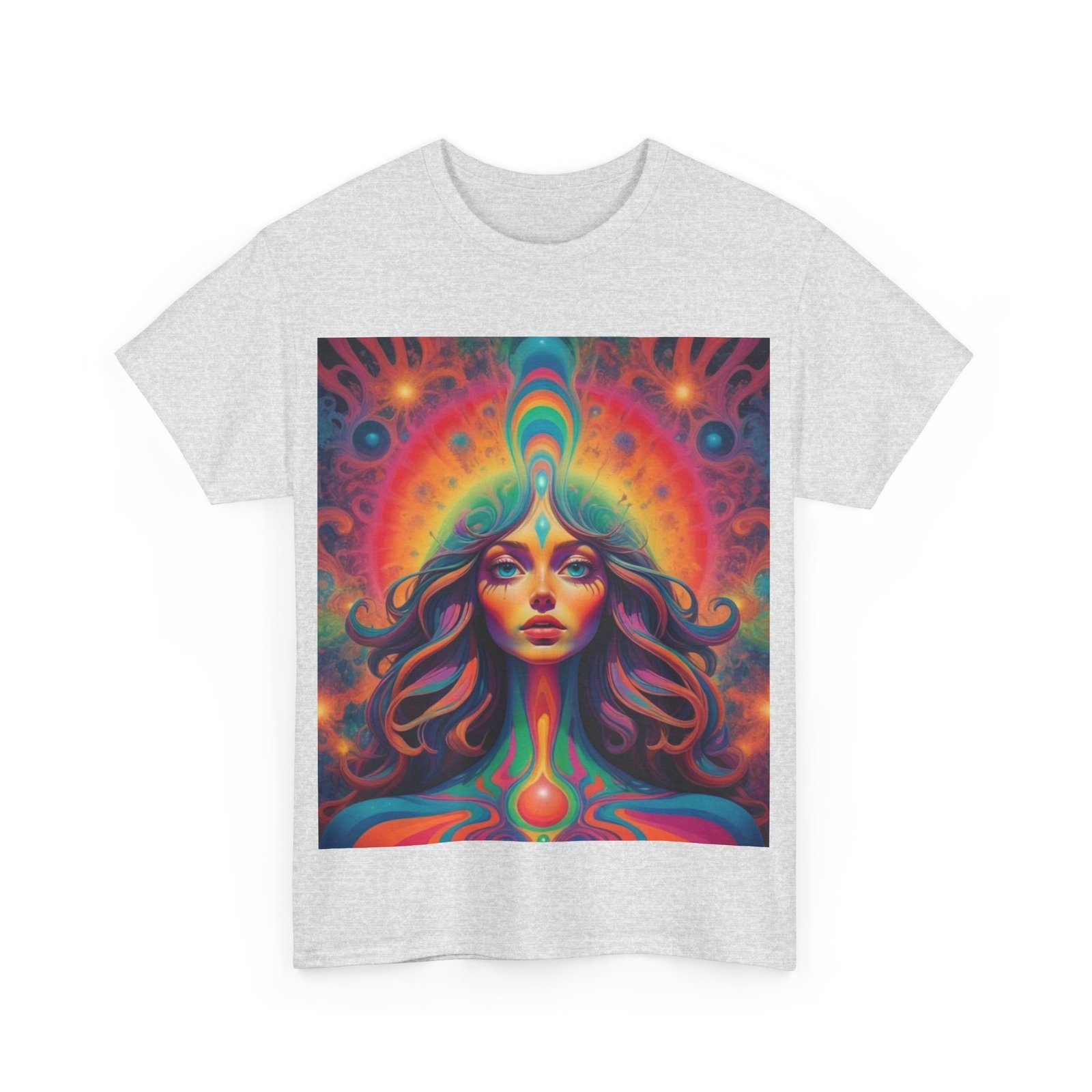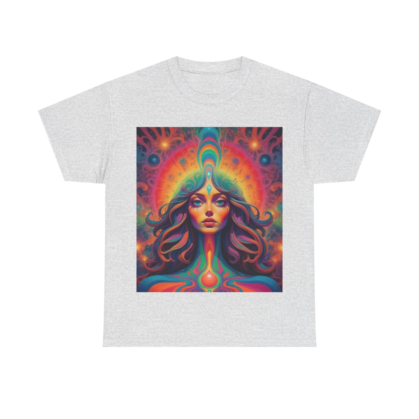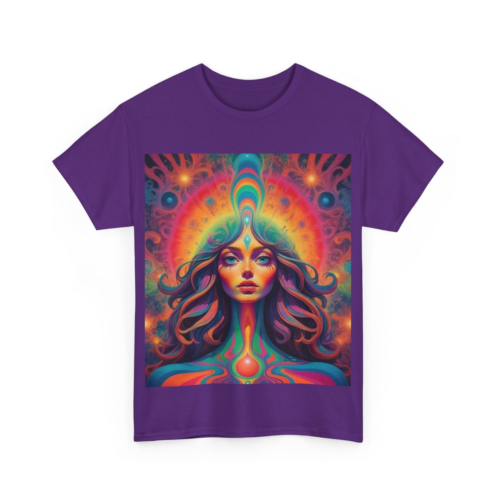 Fun psychedelic men’s cotton T-shirt that is perfect for casual wear or adding a pop of color to any outfit. This t-shirt gives off a vibrant and energetic vibe, suitable for those who enjoy standing out in a crowd. Perfect for music festivals, casual outings, or just lounging at home.