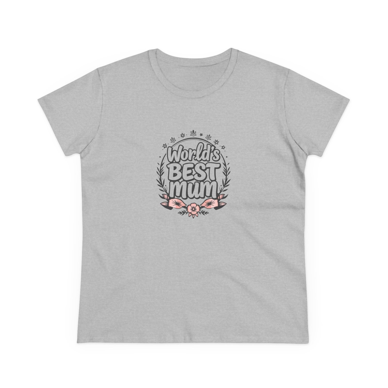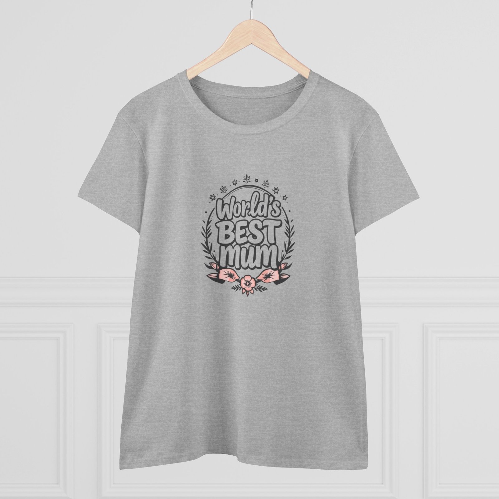 This World’s Best Mum women’s cotton T-shirt is a perfect gift to show your mum that she is the best mum in the world. It is a medium weight, semi-fitted tee that is comfortable to wear and durable. This T-shirt is perfect for Mother’s Day, birthdays, or just to show appreciation to a wonderful mum.